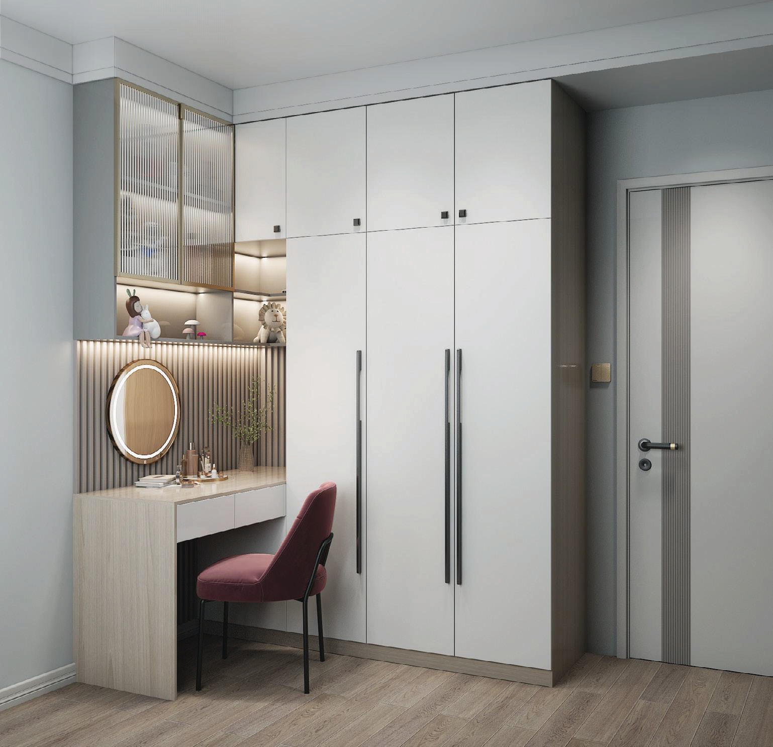 Hinged wardrobes with integrated lighting